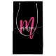 Monogram Stylish Modern Hot Pink Black Small Gift Bag