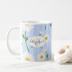 Monogram Summer Daisies Pattern Light Blue Stripe Coffee Mug