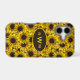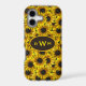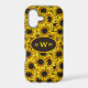 Phone case is completely covered with a pattern of country sunflowers. The monogram space shown can be moved, background colour and border,, and font colour and style can be changed as desired. Designed with sunflower lovers in mind.