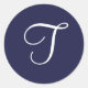 Monogram T, White on Navy Blue, Classic Round Sticker