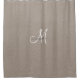 Monogram Taupe White Script Faux Linen Shower Curtain