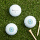 Taylor Made Golf Balls shown with a gold laurel wreath on a blue background with a custom monogram letter.