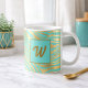 Monogram Teal and Gold Animal Print Coffee Mug