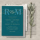 Monogram Teal Aqua Turquoise QR Code Wedding Invitation