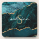 Monogram Teal Blue Gold Agate Geode Coaster