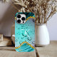 Monogram Teal Foil Gold Trim Fantasy Raindrops Case-Mate iPhone 14 Pro Max Case.