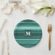Monogram teal stripes paper plate