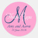 Monogram Stickers for Girly Pink and Navy Blue Wedding. This elegant, simple design is perfect for wedding favours and thank you cards. Elke Clarke ©2011. The words "thank you" in a white script font, bride and groom names and wedding date in white text, navy blue monogram or initial design on a pink background. For other colours contact luxuryweddinginvitations@gmail.com