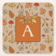 Monogram Thanksgiving Fall Leaves Square Paper Coaster