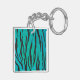 Monogram Tiger Black and Teal Print Pattern Key Ring