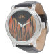 Stylish and trendy Black and Hot Orange Tiger Striped Pattern Vintage Leather Watch by Imagine That! Design with our unique touch of texture and pizazz in bright orange colours to satisfy the needs of tiger lovers, wild animal print lovers, and jungle print lovers of all ages. Don't forget to customise the initials to make this your very own. Go wild today with ITD Wild Me Tiger stripes.