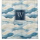 Monogram Tranquil Blue and White Wave Pattern Show Shower Curtain