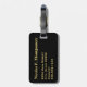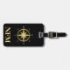 Luggage tag with faux gold compass, monogram initial(s)/name on a black stripe monogram frame, name, and address information on a black background. Personalise with your monogram initial(s)/name, name, and address information using the easy templates. Font colour, font style, font size, and black background colour are customisable.