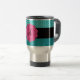 Turquoise/aqua/teal white polka dots pattern and faux turquoise glitter background with a pink rose floral pattern scallop circle and black stripe and monogram letter change to any letter a,b,c,d,e,f,g,h,i,j,k,l,m,n,o,p,q,r,s,t,u,v,w,x,y,z