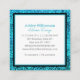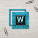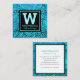 A turquoise and blue ombre leaf foliage damask pattern on a rich, deep turquoise textured background adorns this stunning, modern, trendy custom square business card. Personalise with your initial, full name, and business on the front. Fill in the back side with your phone numbers, address, email, website, and social media accounts. Makes a chic, smart, and stylish statement wherever you go.