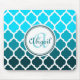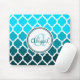 Monogram Turquoise Ombre Moroccan Lattice Pattern Mouse Mat