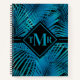 Tropical palm fronds in turquoise on a black background features your monogram in chic lettering on the front. CHOOSE from 10 page styles and soft or hard cover. Create for yourself or give as a gift. MATCHING items in our store.