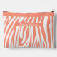 Monogram, Pencil Case, personalised template. "Fashion Woman" - Lettering. Turquoise and Pink Coral colour Striped Zebra Pattern Trendy Design. ForAccessories > Bags & Wallets > Cosmetic & Toiletry Bags. For Her, Girl, Woman, Mother, Mum, Grandmother, Birthday, Anniversary, Holiday, Spring, Summer 2026 Trend, Tropical Sea Beach Party , Beautiful Gift. Design with text template Personalise them by adding or change name.