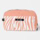 Monogram, Pencil Case, personalised template. "Fashion Woman" - Lettering. Peach and White colour Striped Zebra Pattern Trendy Design. For Accessories > Bags & Wallets > Cosmetic & Toiletry Bags. For Her, Girl, Woman, Mother, Mum, Grandmother, Birthday, Anniversary, Holiday, Spring, Summer 2026 Trend, Tropical Sea Beach Party , Beautiful Gift. Design with text template Personalise them by adding or change name.