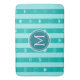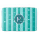 Monogram Turquoise Stripes Modern Heart Pattern Bath Mat