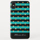 Monogrammed Girly Turquoise Aqua Blue with Black Stripes and Gold Foil Circles Smart Phone Case that you can add your name to. Please contact the designer if you would like additional matching items.
