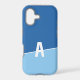 Ocean Calm, purity in two solid colours. Ocean blue and sky blue. And in white, your initials in a classic sans serif font.