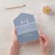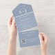 Contemporary, simple, qr code, dusty blue, modern, elegant Wedding All in One Invitation. Tri-fold calligraphy, minimal, simple, unique, modern wedding invitations. Customise with your details. Order in time to avoid a disappointment.