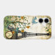 Trendy Elegant Eiffel Tower Ephemera Folksy Fairycore Cottagcore Love Birds Vines Flowers and Whimsical Musical Notes Sheet Music Overlay Tree Earth Tones and Yellow Coral Teal iPhone Cases
