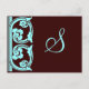 Personalizable monogram postcard with a deep chocolate brown background and a scripty letter and a vintage mediaeval art element in light teal blue. Use this single letter monogram template for weddings, birthdays, announcements or to add a personal professional touch to your letters. Click Customise It to change fonts or background colours.