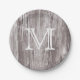 Monogram Vintage Old Wood Background Paper Plate