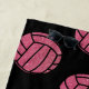 Wording can be left blank and you can enjoy the beach towel as is with the pink glitter and black volleyball design.