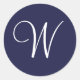 Monogram W, White on Navy Blue, Classic Round Sticker