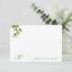 Elegant Modern Monogram Watercolor Art Leaves Simple Template Flat Note Card.