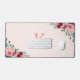 Monogram Watercolor Boho Pink Burgundy Floral Desk Mat