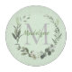 An elegant watercolor foilage wreath in olive shading where in the centre you can customise it with a name and letter on a light minty green backdrop. Stylish trendy vibes.
