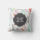 Monogram Watercolor Feather Pattern Pillow