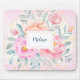 Monogram Watercolor Peonies Roses Pink Floral Mouse Mat