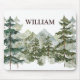 Monogram Watercolor Pine Forest & Mountain Rustic Mouse Mat
