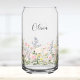 Monogram Watercolor Pink Blue Flowers Floral Can Glass
