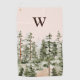 Monogram Watercolor Rustic Green Forest Golf Towel