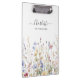 Monogram Watercolor Rustic Pretty Wildflower Field Clipboard