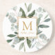 Introducing our Monogram Watercolor Tropical Green Leaves coaster. Featuring watercolor illustration of greenery bouquet arrangement with customizable monogram on the middle in gold color. Suitable as wedding gift for parents or nature lovers.