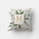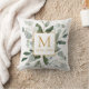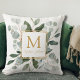 Monogram Watercolor Tropical Green Leaves Cushion