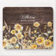 Monogram Watercolor Yellow Sunflower Field Wood Mouse Mat