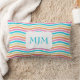 <b>This Bright colourful Monogram Wavy Stripes Lumbar Pillow (13”x21") features a white background with orange, pink, blue and lime wavy lines. There is a white bracket shape in the centre for your Monogram. Perfect for any room in your home or office. Customise to suit your needs. Also makes a wonderful housewarming gift! Choose from Polyester or 100% grade A cotton. </b>If you need help customising this product, please contact me through my store and I'll be happy to help! <br />
