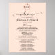 A simple chic foliage rose gold foil monogram peach rose wedding ceremony program sign foam board. Easy to personalise with your details. Modern boho wedding ceremony program sign foam board editable, wreaths photo wedding invitation, customisable, calligraphy handwritten font, simple, elegant.