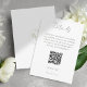 This chic and simple enclosure card guide your guests to your wedding website via a QR code or address. The back of the card includes couple monogram and floral frame in light green. The text in front has a dark forest green colour set against a white background, while a lovely lighter shade of green adorns couple initials and floral frame.