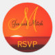 Monogram Wedding RSVP Sunset Photo Classic Round Sticker
