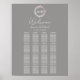 Easy to personalise with your details. A simple chic floral faux foil monogram grey wedding seating chart. Modern boho wedding seating chart editable, customisable, calligraphy handwritten font, simple, elegant.