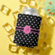 Monogrammed black and white polka dot pattern. White polka dots on black and in the middle there is a hot pink circle and a white with a hot pink border.